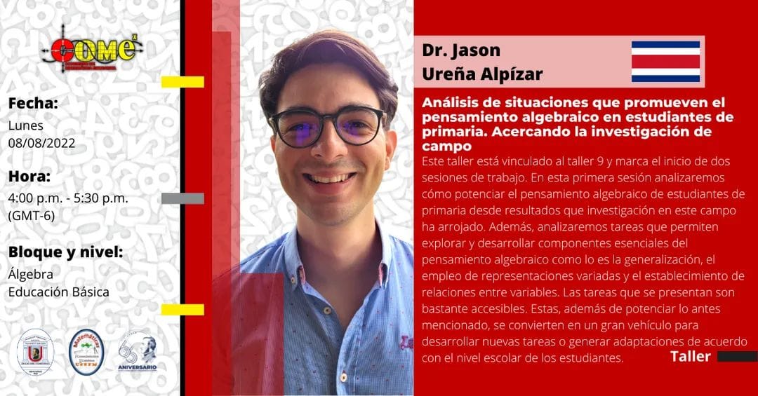 En este taller, que se desarrollará en dos sesiones, a través de las cuales analizaremos cómo potenciar el pensamiento algebraico de estudiantes de primaria desde resultados que investigación en este campo ha arrojado.