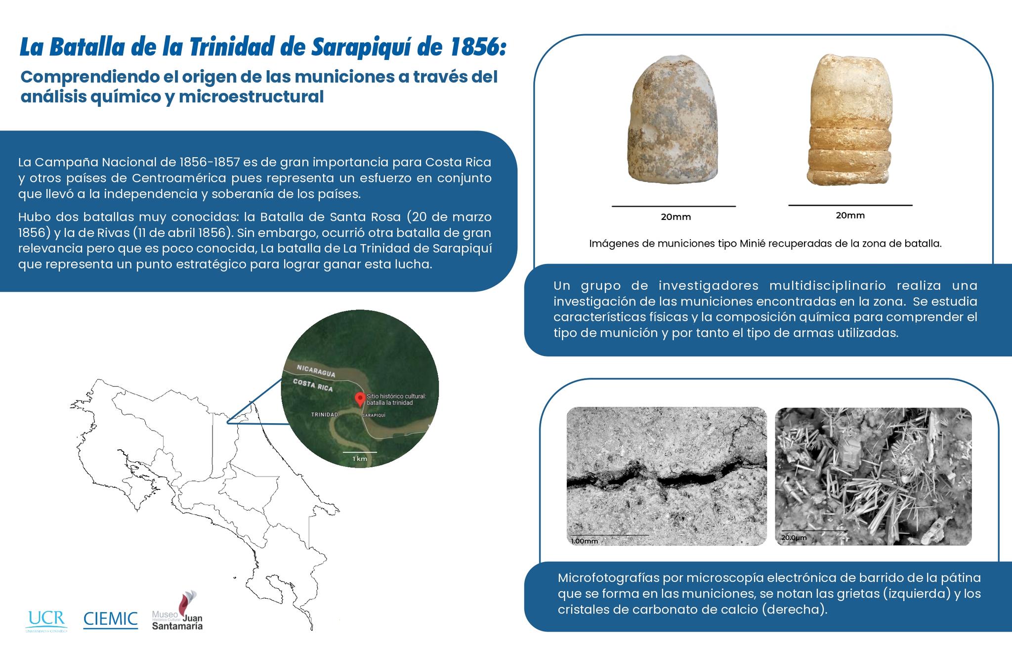 Infografía sobre la investigación de muestras arqueológicas de la batalla de la Trinidad de Sarapiquí, campaña 1856-1857.